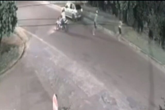 Imagens de câmeras de segurança registraram o momento em que um homem foi executado em uma rua do bairro Jardim das Oliveiras, em Sinop (481 km de Cuiabá), na noite de quarta-feira (22).