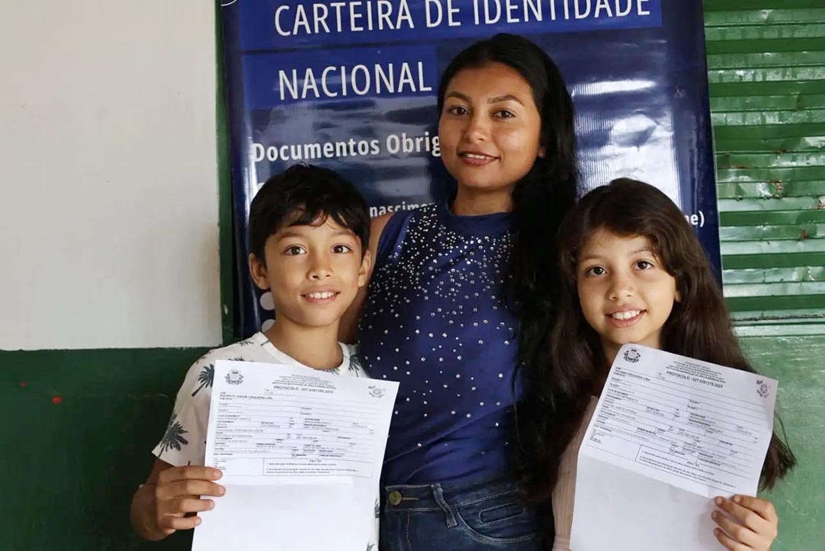 RG e euforia – Enquanto casais oficializavam histórias de amor, outro momento chamou atenção na 7ª Expedição Araguaia-Xingu em Espigão do Leste: a emissão do primeiro RG de crianças. Eram pouco mais das 6h quando Artemis Ferreira Lira, 26 anos, chegou com os filhos Maurício, 11 anos, e Juliana, 9. Ela havia decidido que aquele seria o dia em que os filhos teriam, finalmente, o primeiro documento de identificação. “Se não fosse a expedição, eu nem sei quando ia conseguir. Tudo é gasto, tudo é longe”, contou a mãe, aliviada.
