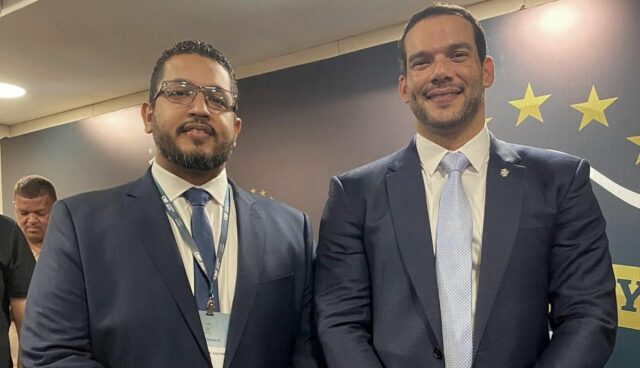O candidato à presidência da Federação Mato-grossense de Futebol (FMF) pela chapa “Unidos pelo Avanço”, Diogo Pécora, esteve nesta quarta-feira (26) com o presidente da Confederação Brasileira de Futebol (CBF), Samir Xaud, durante o Summit CBF Academy 2025, realizado em São Paulo. No encontro, ambos conversaram sobre o cenário atual e futuro da gestão esportiva, e Xaud reafirmou seu apoio ao projeto defendido pelo grupo mato-grossense.