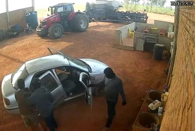 A ação teve início por volta das 8h, quando um funcionário da fazenda foi rendido no galpão agrícola por dois homens armados com revólveres, que chegaram em um veículo Fiat Siena. Após amarrar o funcionário e colocá-lo dentro do carro, os assaltantes exigiram as chaves dos tratores e seguiram em direção à sede da propriedade.