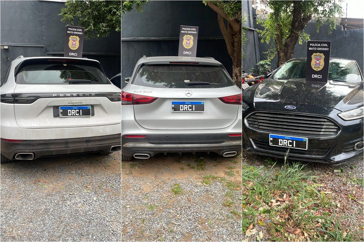 Entre os itens apreendidos pela Polícia Civil estão três veículos de luxo: uma Porsche Cayenne SUV, uma Mercedes-Benz GLA 200 e um Ford Fusion sedã. Os veículos somados ultrapassam R$1 milhão.