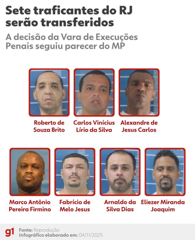 Sete chefes do tráfico são transferidos em comboio para presídios federais 12/11/2025 Sete chefes do tráfico são transferidos em comboio para presídios federais FONTE