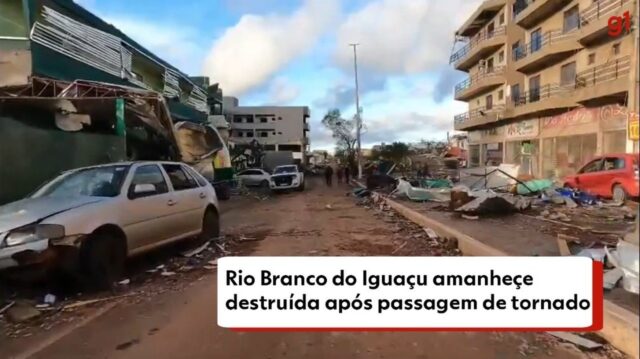 “A gente tem uma farmأ،cia e saأmos correndo, porque minha filha estava em casa. Chegamos lأ،, nأ£o deu dois minutos, comeأ§ou a voar tudo. Voou telha, parede. Corremos para o banheiro, estourou tambأ©m. Nos abraأ§amos e pedimos a Deus para nos proteger. O tornado durou 30, 40 segundos, e detonou tudo. Eu tenho dois carros, um deles voou dez metros. Parecia assim como se soltassem uma bomba atأ´mica.”